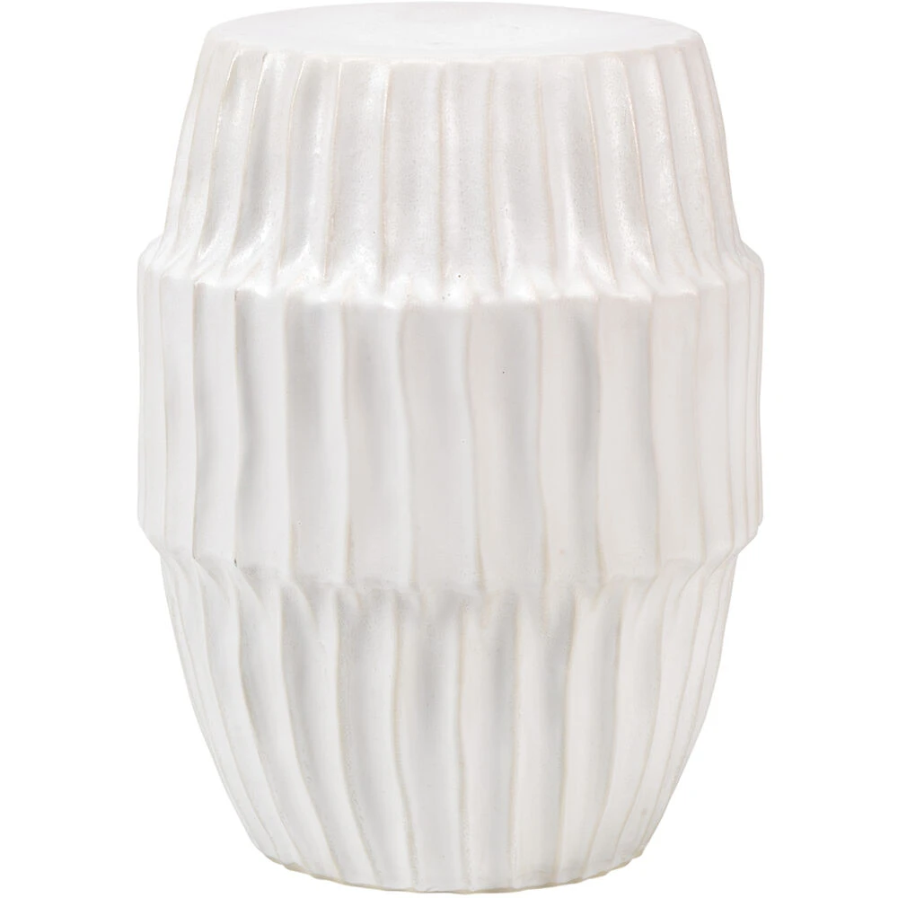 Reminiscent of textural sea algae, the rippled silhouette of this ceramic side table is perfect for any coastal inspired interior. The aquatic shape is adorned in a crisp white glaze, that casts subtle shadows in the recessions of the wave-like texture, reminiscent of the bright sun casting shadows on a white sandy beach.