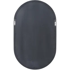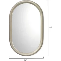 Inspired by the view from a window seat, as the plane takes off, your gaze is framed by the oval shape of this high-flying mirror. The frame’s grey-blue color is reminiscent of the blue sky obscured by the clouds as you ascend through the atmosphere.