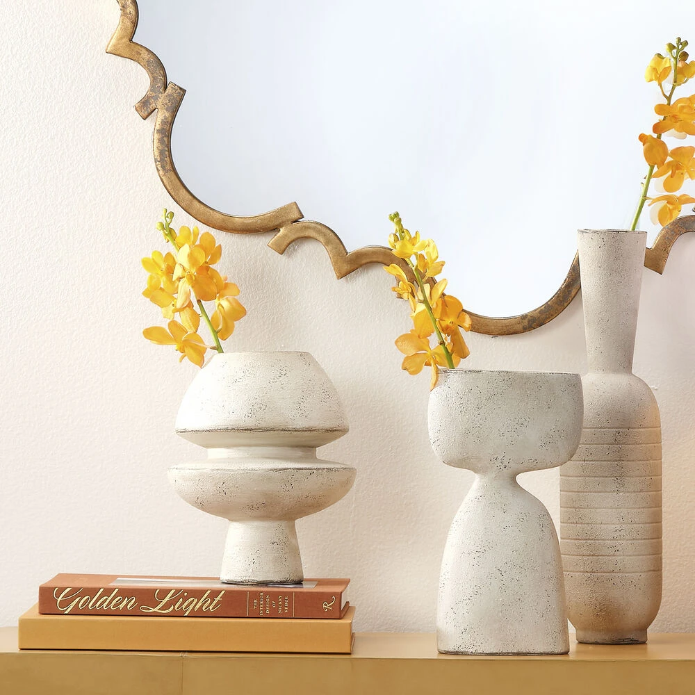 Organically inspired with generous curves and a nipped in waist, this handcrafted ceramic vase is an ideal addition to a modern, coastally inspired décor. Hand-shaped and with a gently antiqued finish, no two will be identical.