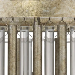This elegant round chandelier has alternating tubes of glass and metal to create a statement piece. The frame and tubes are finished in a champagne leaf.