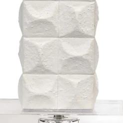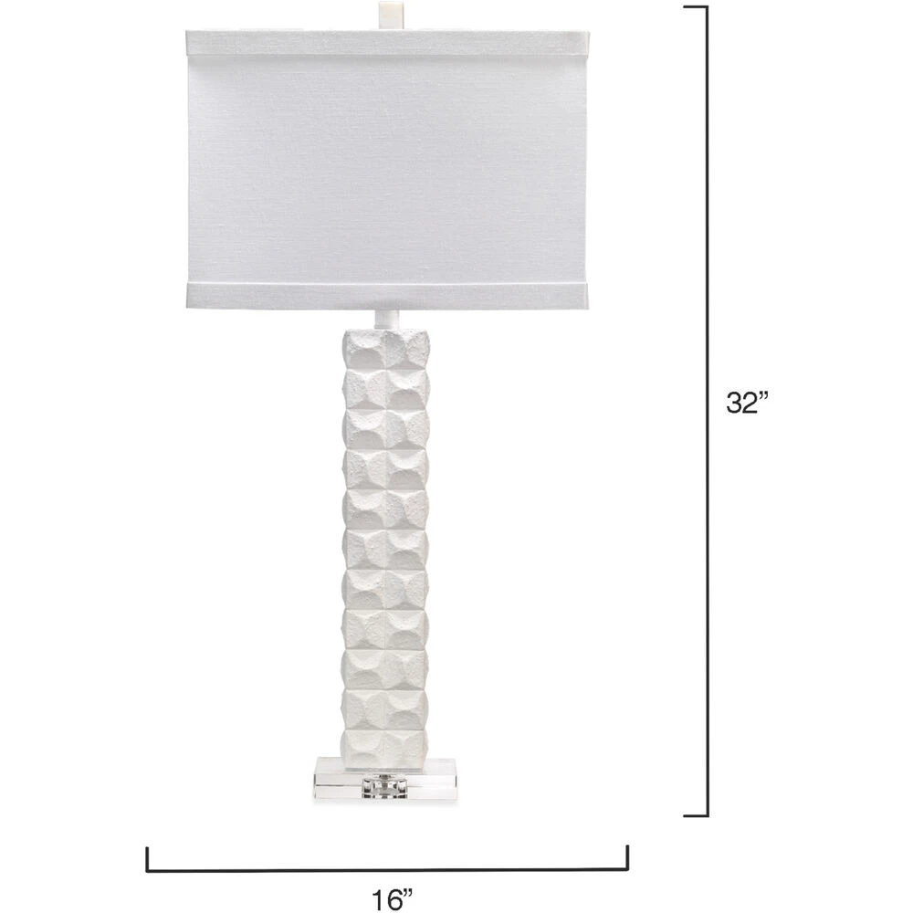 This table lamp adds to our collection of white gesso or plaster pieces using a technique that was inspired from “Plaster of Paris” from the early 1900’s. The Giacometti brothers were the first to use this technique in the art world. The three dimensional chiseled frame in plaster adds a modern touch to this piece.