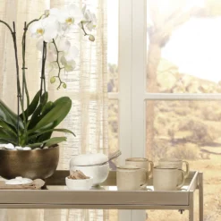 A softly rounded, lidded bowl is placed on top of a pillar base to create some seriously chic storage! These expertly crafted marble containers celebrate the beauty of the natural stone from which they are carved, and no two will be identical. Use with cotton balls in the bath, jewelry in your dressing area, or fill with potpourri to beautify and gently scent your entry.