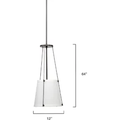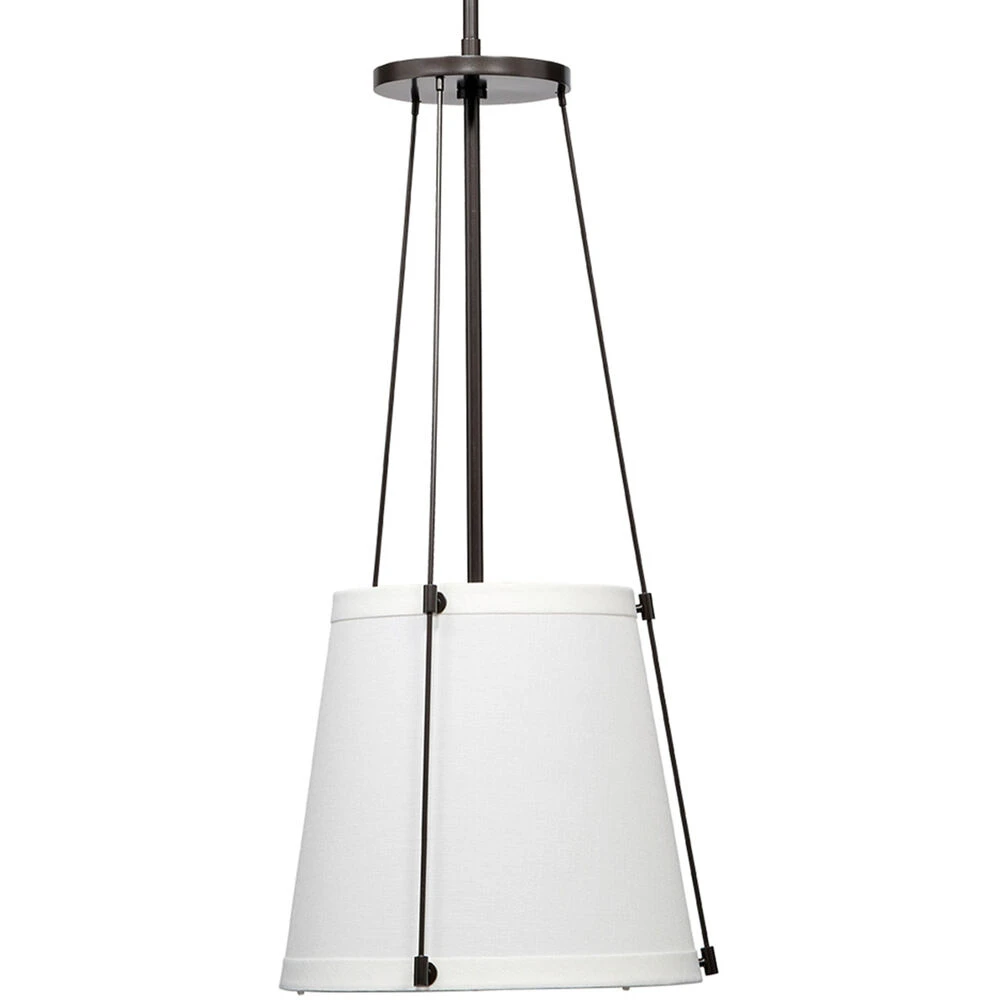 The pendant is suspended from a delicate metal framework with a modern metallic finish. Effortlessly appealing, it features an off-white drum shade in linen to softly diffuse its glow. Hang in a kitchen, over a dining table, or in an entry for an easy elegant was to light up your home.