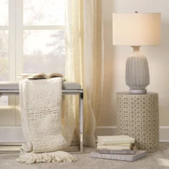 A more linear reimagining of the intricate patterns in light and shadow created by patches of Queen Anne’s Lace wildflowers. This grey and cream ceramic side table is hand-fired into a one-of-a-kind piece of art suitable for indoor and outdoor spaces. The ceramic, hand-fired side table features a layered, reactive glaze that reveals organic variations in tone and add to the charm of hand-made imperfections. The versatile table mixes easily with a variety of styles and works well in your home garden or nestled between chairs in your living room. Variations in size, color and texture are inherent to each hand-made table. No two pieces are exactly alike. Tables are outdoor safe for mild weather only; bring indoors in inclement weather.