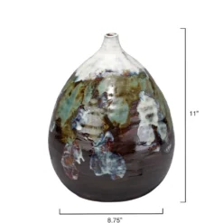 The stunning Collage collection features artisan crafted ceramic vases. They are available in an assortment of sizes and shapes, and each features thick, rich layers of hand applied glaze. The colors are organic and inspired by the earth. Every shade of sand, stone, sea, and sky can be found. True one-of-a-kind works of art, they are beautiful on their own or with your choice of dry filler, try feathers or reeds! Due to the handmade nature of this piece, variations in finish, pattern & shape will occur. No two will be alike.