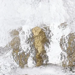 A refined study in contrasts, this striking chandelier features slabs ice-like glass that soften and diffuse the “flame” of the bulbs behind it. A burnished metal canopy and chain perfectly complement the richly textured glass. Sophisticated yet simple, it is a wonderful choice above a farmhouse dining table.