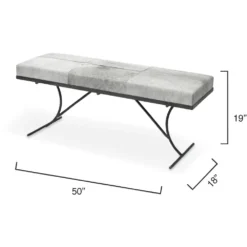 Unexpectedly combining grace and strength, this bench features dynamically swooped hand-forged legs finished in black and topped with thick cushions wrapped in leather. It makes for a striking accent pulled up to a dining table, welcoming entryway or at the foot of your bed.