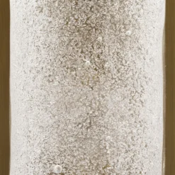 This clear decorative glass treatment feels like melted ice against an antique brass back plate. We have two sizes in this wall sconce. They can be placed in any room in the house, and hang vertically or horizontally.