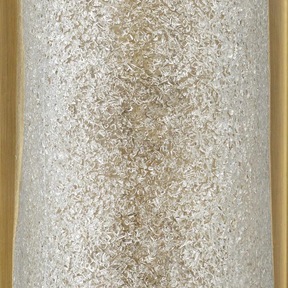 This clear decorative glass treatment feels like melted ice against an antique brass back plate. We have two sizes in this wall sconce. They can be placed in any room in the house, and hang vertically or horizontally.