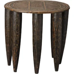 The people of the Naga, India region are known for the uniqueness and beauty of their design aesthetic. These stools honor that tradition. Each is handcrafted by Naga artisans. The nine tapered legs are carved of sustainably harvested wood from the mango tree, and their seats are embellished with etchings inspired by their classic carvings. Placed near a hearth or at the foot of a bed, they add a note of worldly sophistication to any décor.