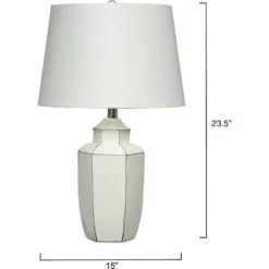 This handcrafted ceramic lamp accentuates its lines with hand-painted piping. The white-on-white look continues with a rolled edge linen shade, and lends itself well to coastally inspired interiors, or to decors that just need to lighten up a little!