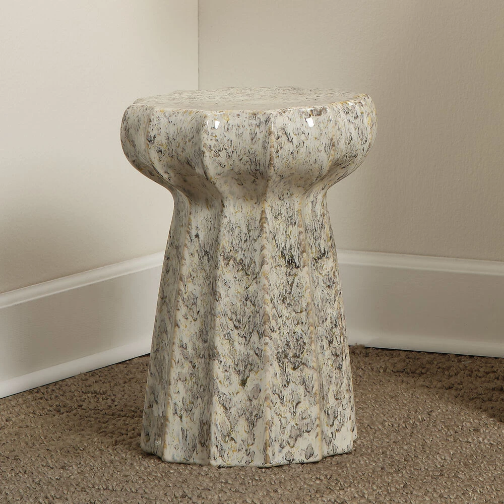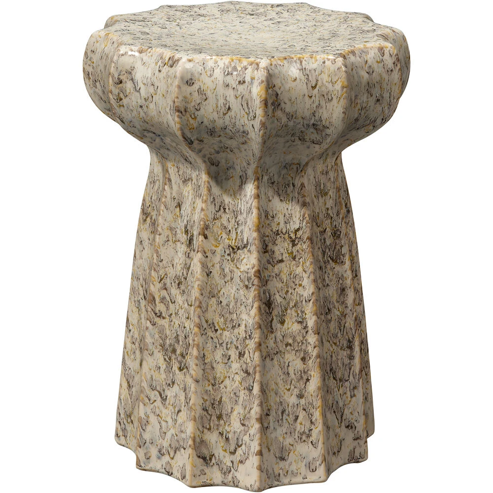 - The handcrafted nature of ceramic creates products with character and individuality. The inherent grain, heat striations, variations in tone and texture, are preserved, to create pieces rich in detail and natural beauty. These unique imperfections and variations are what define our products, with each piece having its own personality. To be used as a side table only, not suitable for seating. Outdoor safe for mild weather only. Bring indoors in extreme heat or cold.