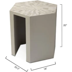 Inspired by the beauty of natural horn, our Radiant side table retains all the warmth and radiance of the organic material while being 100% cruelty free. To keep the intricate faux horn surfaces the star, they are paired with a simple gray lacquered interior and a sleek geometric shape.