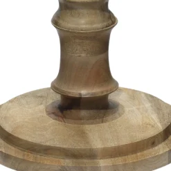 A neutral blonde wood adds warmth and texture into any space. Its carved body and circular base with bevel give this piece an architectural appeal that will modernize any casual interior.
