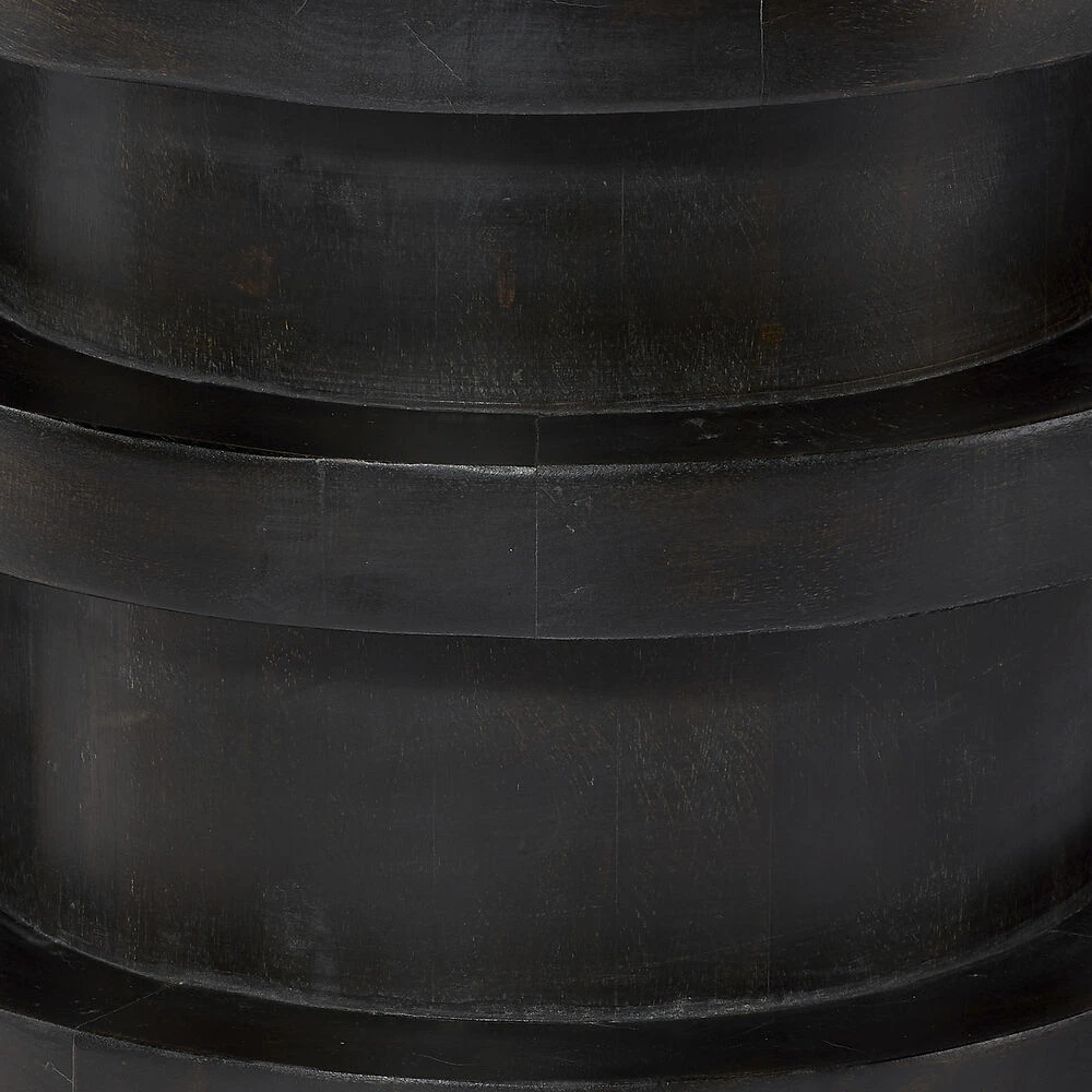 With architecturally inspired lines and industrial notes, the Revolve side table defies categorization. Hand-carved of mango wood by artisans this table features organic variations in finish and texture. Place this table next to a sofa, combine two or three in a seating area for versatile use or even use them as nightstands. Anywhere in your home, this side table is sure to be a favorite!
