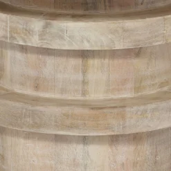 With architecturally inspired lines and industrial notes, the Revolve side table defies categorization. Hand-carved of mango wood by artisans this table features organic variations in finish and texture. Place this table next to a sofa, combine two or three in a seating area for versatile use or even use them as nightstands. Anywhere in your home, this side table is sure to be a favorite!Wood variations, such as knots and hairline cracks, are inherent to each hand-made table and make each item unique.