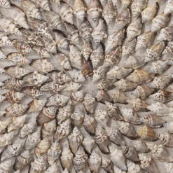 A revolving pattern of unique shell shapes create a circular pattern of organic beauty. Natural colors and textures of radiate outward while drawing you into this stunner from the sea. As if this wall art piece washed ashore, specifically for your wall.