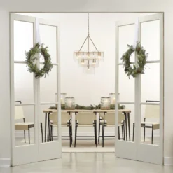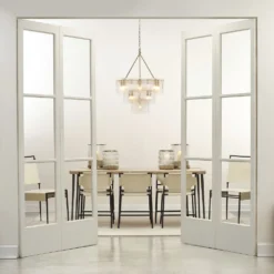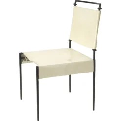 Buttery soft off-white leather is backed with white canvas and cinched around black hand-forged iron legs in this artisan crafted dining chair. It’s a little bit urban, a little bit rustic chic, and with the incredible detail on the back of the chair they look stunning pushed up against a dining table.