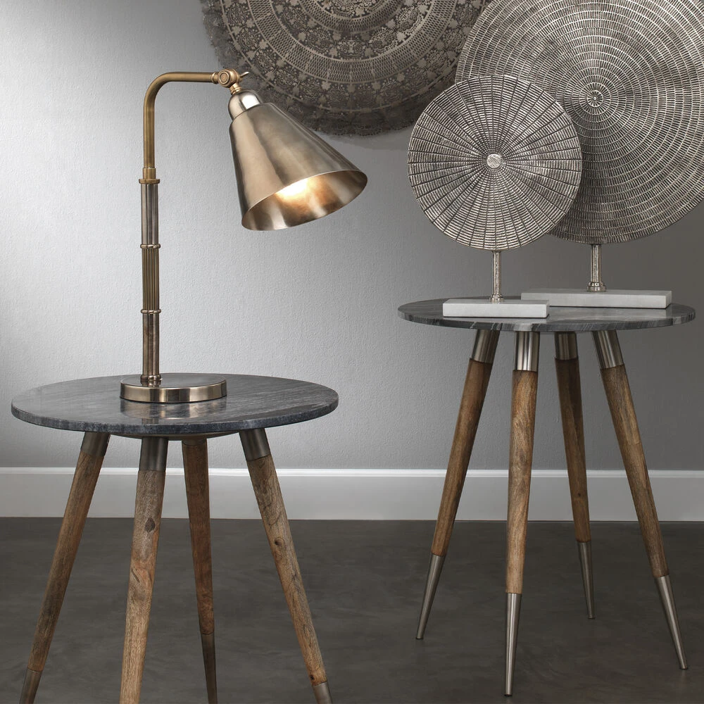 A Jamie Young Co. take on Danish lines creates the perfect task lamp for any room. Alternating between an antique silver patina and ribbed antique brass, this silhouette accounts for every detail. finishes will vary, a natural patina exists and is not a defect, variation in stain pattern will occur